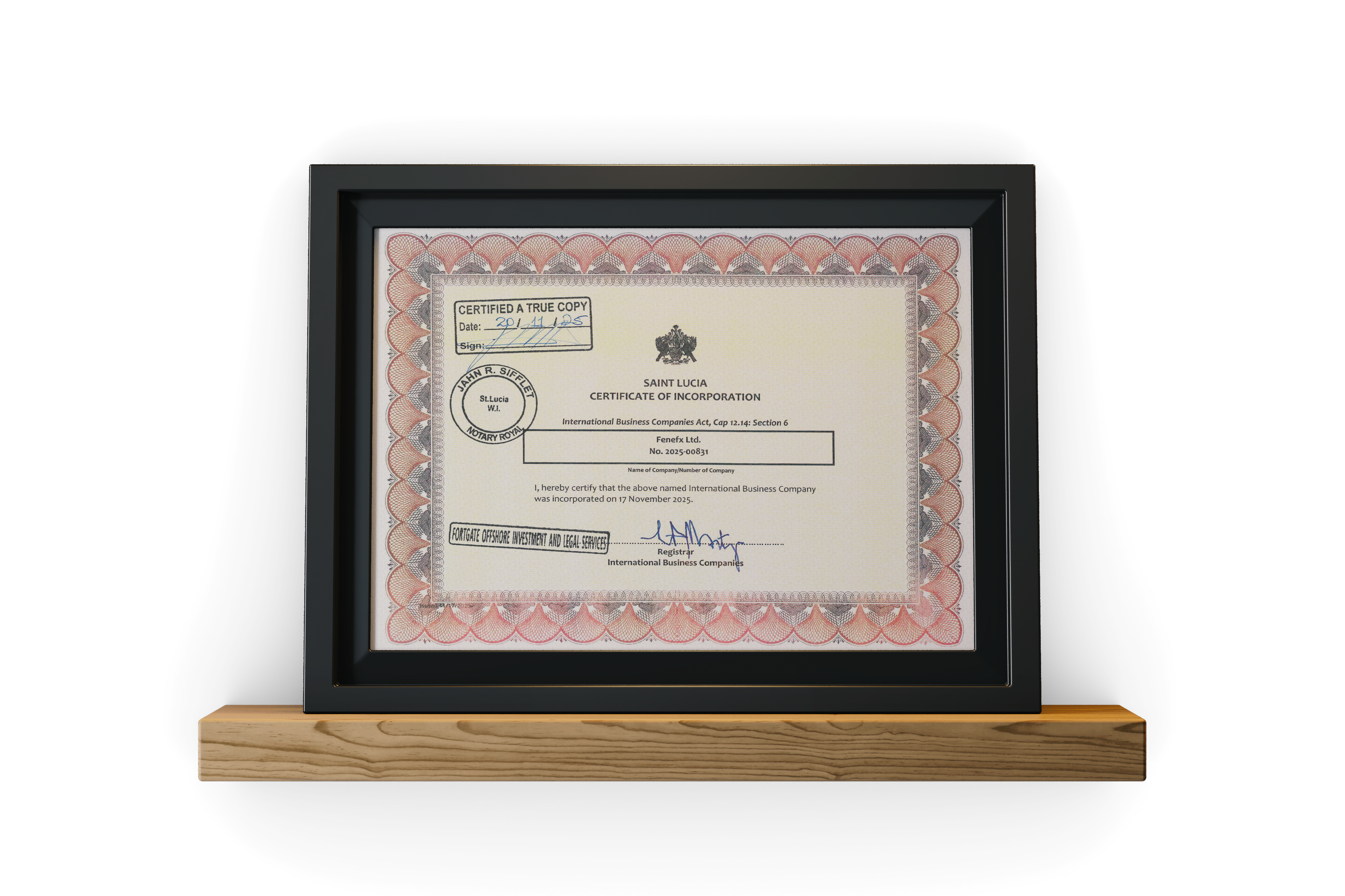 شرکت FeneFx با مسئولیت محدود (Ltd) در سنت لوسیا ثبت شده است و توسط مرجع اصلی نظارت بر شرکتهای بینالمللی در سنت لوسیا تحت شماره مجوز 00831-2025 تأیید شده است.